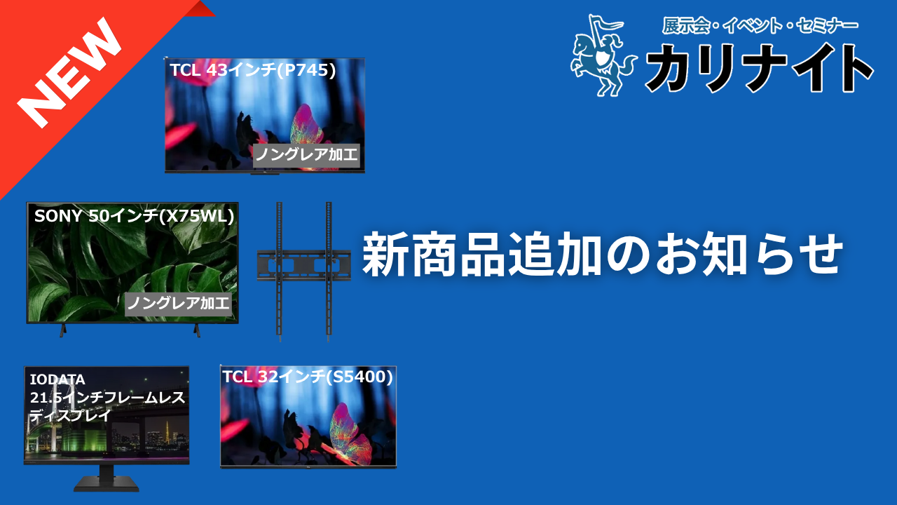 デジタル機器レンタル「カリナイト」では、9月13日~10月31日の期間にかけて、新たに5点の新商品を追加いたしましたのでお知らせいたします。今回追加された商品は、モニターの縦設置に対応した壁掛け金具および21.5~50イ […]